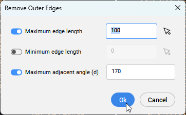 Entities in set: 42022. Remove the outer edges thus creating the outer concave hull boundary of the tin surface using the TINEDIT command