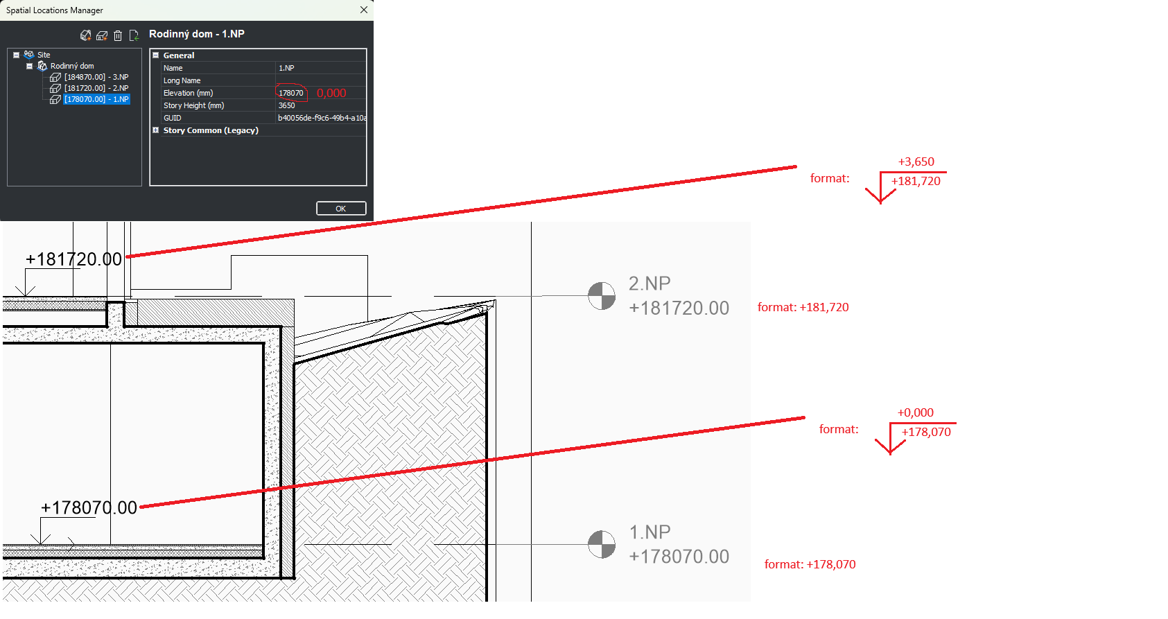 In BricsCAD BIM I need to create a SpotElevation tag so that it shows the altitude above sea and story elevation. The StoryIndicator should have format in meters.