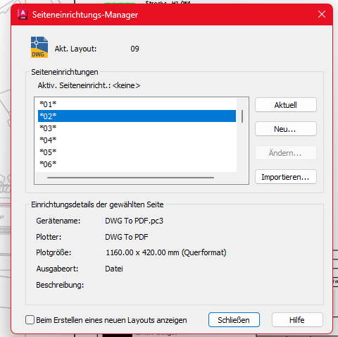 The aktive Layout is 09 in the picture below and the choosen layout is 02. if i would now click the button Aktuell, the setting above (plotter, pltstyle, paper) ist copied from 09 to 02