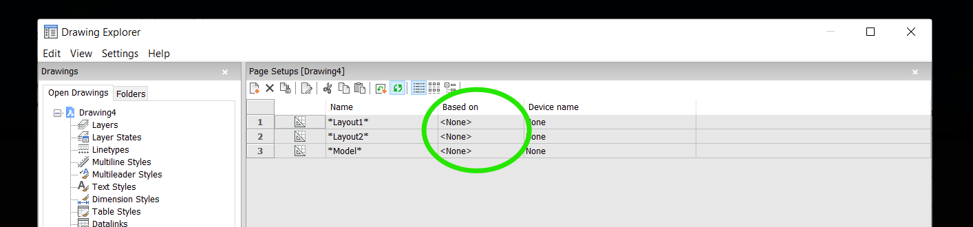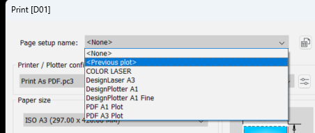 there you can choose another Layout and voila, the settings are copied. PLotter, plot style page size,….
